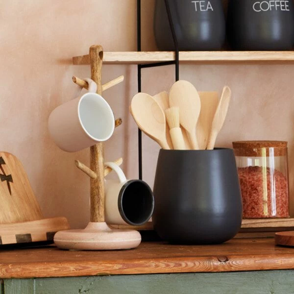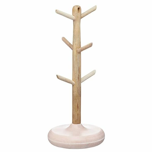The KitchenCraft Serenity Mug Tree is a delightful combination of mango wood and two-tone marble.