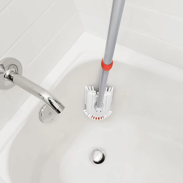 The OXO Good Grips Extendable Tub & Tile Brush allows you to clean the bathroom without having to crouch, climb or kneel.
