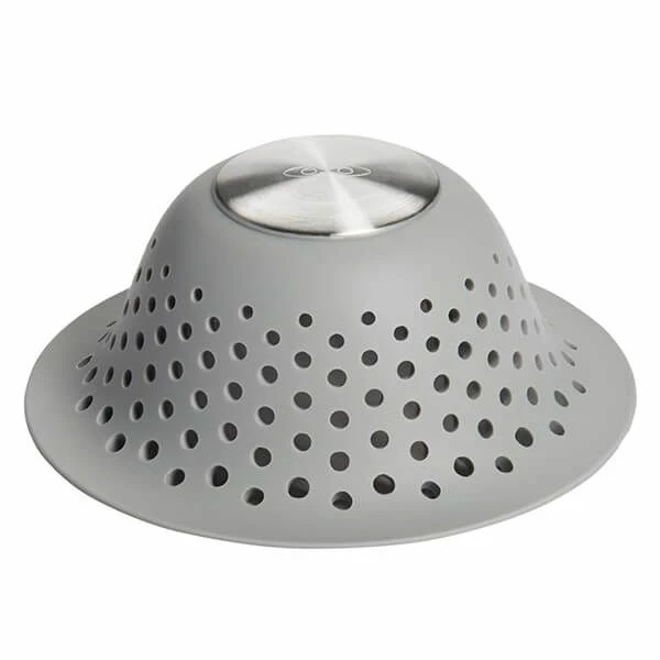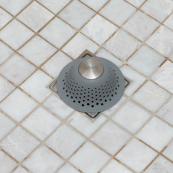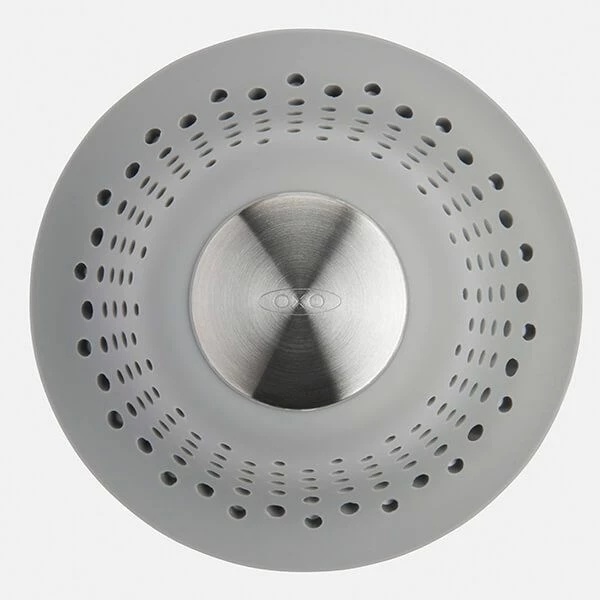 The OXO Good Grips Silicone Shower & Tub Drain Protector can be used to trap hair and other debris whilst allowing water to drain away.