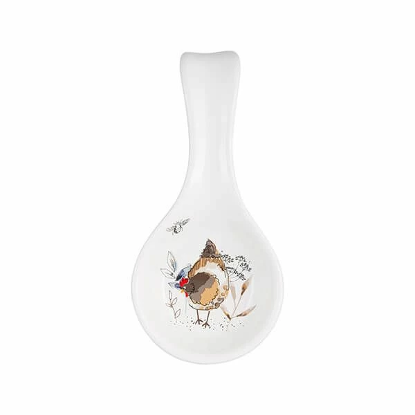 This Price & Kensington country hens spoon rest features the charming rural hens design with foliage and bees.