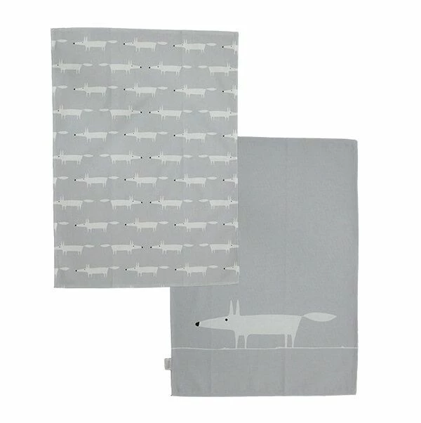 The set of 2 tea towels are part of the Scion Mr fox range. Made from 100% cotton each of the tea towels are grey. One has an all over pattern of Mr fox and the other has one large print.