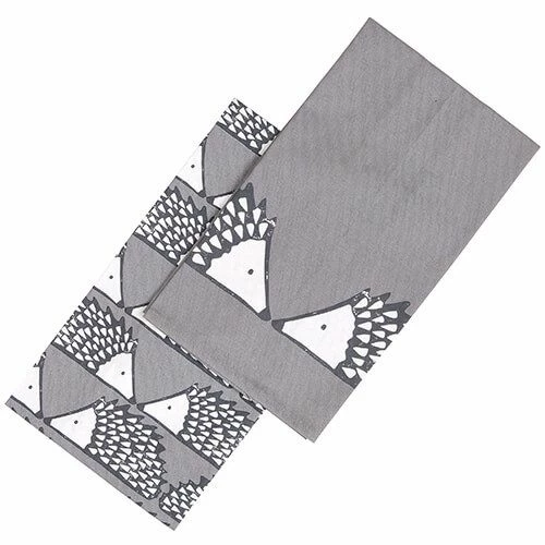 Each Tea Towel features Spike the adorable Hedgehog on a charcoal grey background (one large print, one a repeat pattern print).