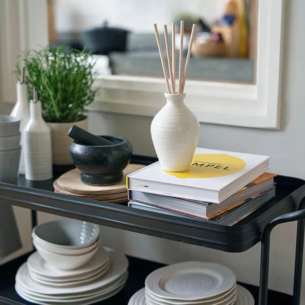 The Wax Lyrical Sophie Conran reed diffuser combines a beautiful design with the structured ‘freedom’ aroma.