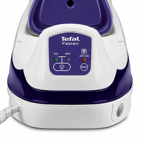 The Fasteo Steam Generator Iron by Tefal provides the perfect combination of speed and convenience. Powerful steam (100g/min continuous with 130g/min boost) generated by a pump which produces up to 5 bars of pressure and a large 1.2 litre water tank deliver faster performance than standard steam irons. A fast heat-up time (ready to go in 2 minutes) and an easy glide ceramic soleplate mean you’ll be whizzing through your ironing in no time at all. An anti-scale cartridge system maintains the steam generator iron’s performance. Other features of the speedy Tefal Fasteo include: Comfort handle; Eco mode; 1.6m power cord length; Scale alert. Supplied with a 2 year Tefal guarantee.