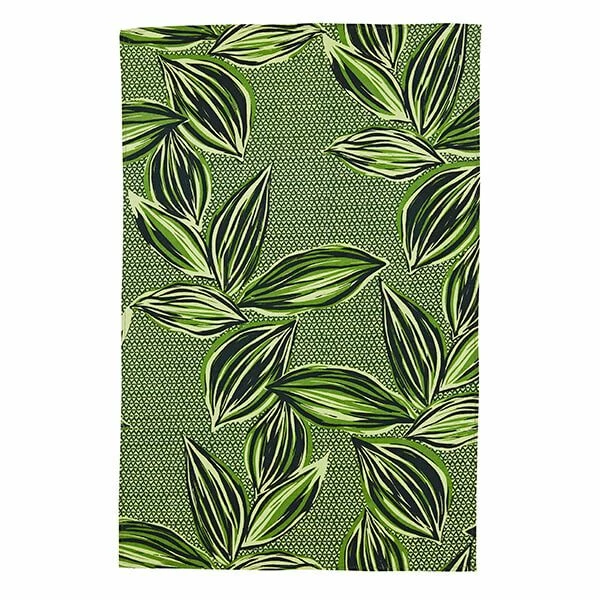 The Ulster Weavers Geo Leaves cotton tea towel design is inspired by traditional Nigerian wax print with bold and beautiful green leaves.