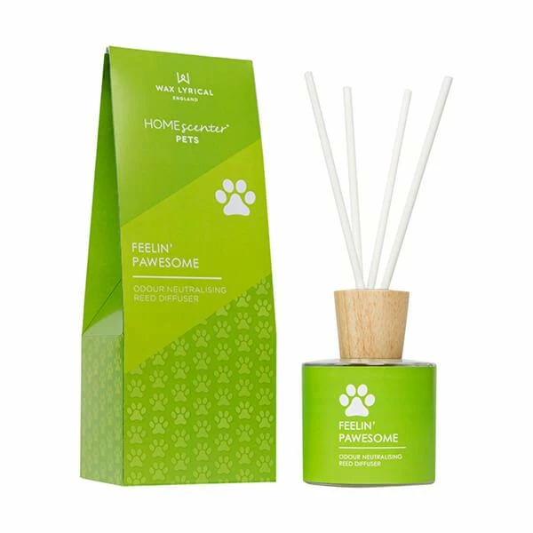 The reed diffuser is made from frosted glass and includes a set of white fibre reeds and 180ml of feeling pawsome fragrance which is a lush green floral accord with cut stems, fresh roses, hyacinth, muguet and a hint of apple.